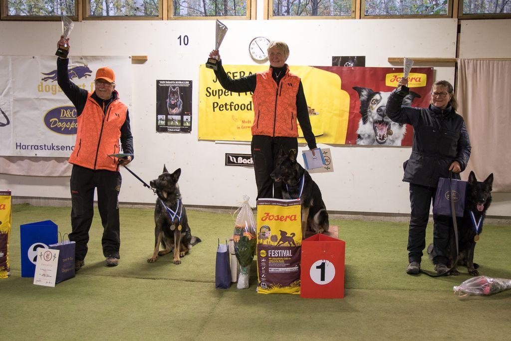 Riihimäenseudun Kennelkerho onnittelee Suomen mestaria Merja Ruutikainen ja Ara Lengy, hopeamitalisti Vesa Kuosmanen ja Hubert Lengy sekä pronssimitalisti Anitta Smura ja UK Nyyssöne.